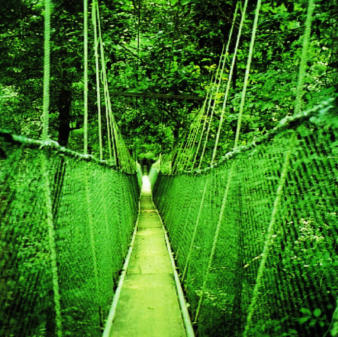 Vertrauen entgegen. Die Brücke führt über einen reissenden Bach, und befestigt wurde sie mit